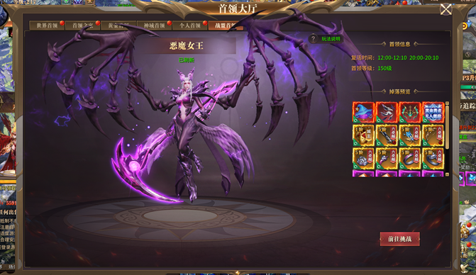 每日12:00-12:10,20:00-20:10会刷新战盟首领,玩家可前往副本击杀